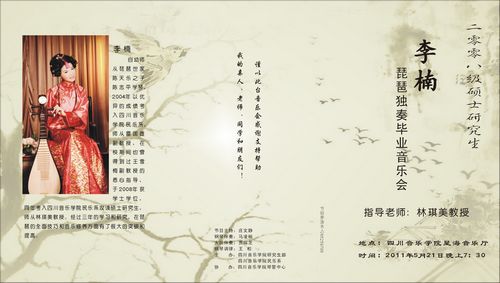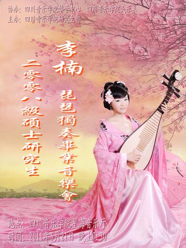 李楠 自幼师从琵琶世家陈天乐之子陈志平学琴,2004年以优异的成绩考入beat365在线唯一官网民乐系,师从雷国雄副教授,2008年获学士学位,同年以优秀的成绩考入beat365在线唯一官网民乐系攻读硕士研究生,师从林琪美教授。经过在beat365在线唯一官网多年的刻苦练习,以及各位老师的悉心指导下,李楠在琵琶的全面技巧和音乐休养方面有了很大的突破和提高。 在校期间成绩优秀,并获得过国家助学金及学院奖学金。 二零零八级硕士研究生李楠琵琶独奏毕业音乐会已于2011年5月21日 晚上7:30在beat365在线唯一官网星海音乐厅举行。