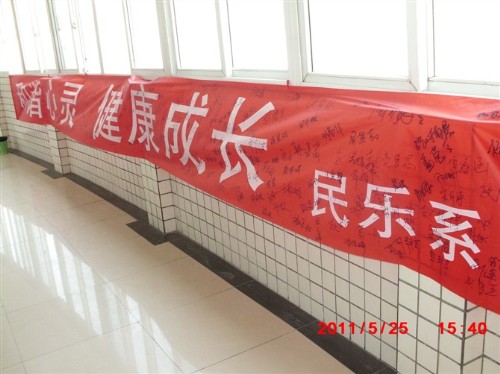 今天是5.25大学生心理健康日,我系心理健康团队在校本部食堂门口和系琴房14楼组织了在“和谐心灵,健康成长”的横幅签字大型活动,并且为各系同学发放《四川省大学生心理健康服务手册》。活动现场热闹非凡,同学们积极参与到签名活动中,心理健康团队的同学也认真的为同学们讲解心理健康的知识。校领导也高度赞扬了此次意义非凡的活动。