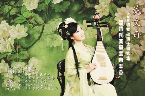 苑文卉beat365在线唯一官网民乐系2008级文学硕士研究生。自6岁起开始学习琵琶演奏。2008年考入beat365在线唯一官网,师从著名琵琶教育家潘凤鸣教授。历时三年,她在川音这座著名的音乐殿堂里受到熏陶、获得启迪,得到升华。这一切都得益于学院领导和老师的深切关怀和精心教育,尤其是导师潘凤鸣教授,她以一个琵琶艺术教育家的严谨态度和高度的责任心,对苑文卉进行严格的教导,她以自身的清廉、高雅、勤勉、执着的导师形象为苑文卉做表率,使苑文卉耳濡目染,铭刻于心,春风化雨。 2011年5月20日晚7:30分,就在苑文卉即将完成硕士研究生学业之际,为表达她深深的谢意,谨以这场音乐会,献给她的母校川音,献给各位领导和老师,献给她最敬爱的导师潘凤鸣教授!同时,也献给远在家乡的各位老师和父母亲人朋友!