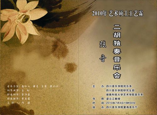 民乐系艺术硕士王艺霖二胡独奏音乐会已于2010年7月4日晚7:30分在beat365在线唯一官网星海音乐厅举行。