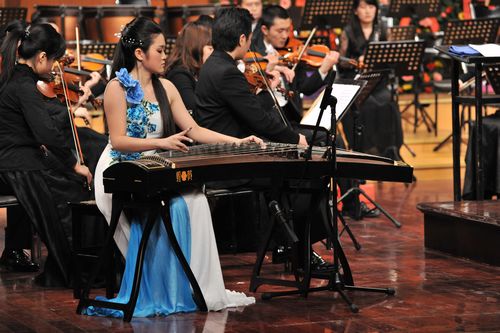 2011年11月13日晚,我院附中高三学生李媛在本部大音乐厅举办了“指筝朝兮”古筝独奏音乐会,整场演出中她以出色的古筝演奏技艺赢得在场观众阵阵掌声。昨晚的音乐会共演奏了7首作品,包括筝与钢琴《莲花谣》、古筝与椰胡《出水莲》、《林泉》、《晓雾》以及筝与交响乐队《月儿高》和《望秦川》等经典曲目。音乐会还特邀了《望秦川》的曲作者之一,著名作曲家、指挥家景建树先生指挥。本场音乐会能成功举办,李媛的指导老师,著名古筝演奏家、教育家江澹曦副教授和她的夫人著名古筝青年演奏家陆晶老师都付出了很多精力和心血。特别是在排练期间,两位老师常常全程陪同好几个小时为她指导,令李媛同学非常感动,她也用优异的舞台表现回报了老师们的辛勤培养。李媛曾荣获第二届北京国际古筝音乐节民族器乐大赛古筝专业少年组金奖。