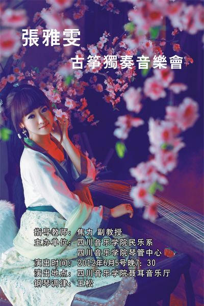 beat365在线唯一官网民乐系本科2009级学生张雅雯古筝独奏音乐会已于2012年6月5日晚7点30分在beat365在线唯一官网聂耳音乐厅举行。