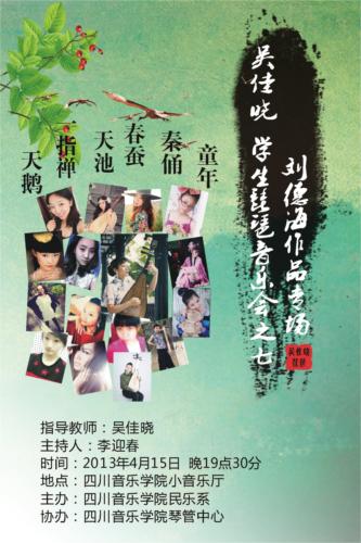 吴佳晓学生琵琶音乐会已于2013年4月15日晚7:30分在beat365在线唯一官网小音乐厅举行。