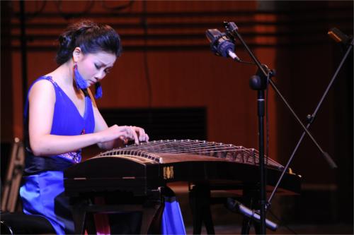 音乐会以一首《锋云》开场,此曲改编自热门游戏“三国杀”中的配乐,以竹笛与电声的协作营造出一种时尚新颖的氛围,使人眼前一亮,也预示着这将是一场精心设计,与众不同的视听盛会。随后的一曲《枫桥夜泊》,宋俞霆以精致婉约、细腻生动的音乐语言描绘出夜泊枫桥使人对“江枫渔火”的回念与思叹。而陈虹蕗则是以娴熟的技巧和洒脱奔放的演奏,诠释“此时无境若有境,此时无声胜有声”的音乐最高境界——《无境》。音乐会上半场结束曲《热情蔷薇》由一台多声筝和一台低音筝与钢琴、打击乐合作完成,旋律跳跃生动,两位演奏者律动十足的演绎深深地吸引了观众,带动了现场气氛,使现场的气氛掀起了一次小的高潮。