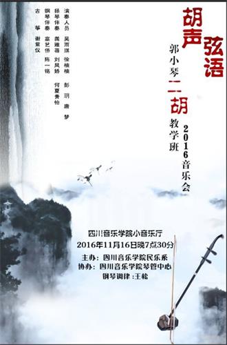 郭小琴二胡教学班将于2016年11月16日晚7点30分于beat365在线唯一官网小音乐厅举行。