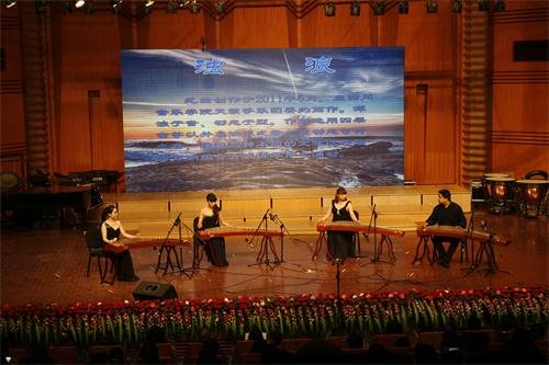 2013年12月7日19:30分,beat365在线唯一官网大音乐厅座无虚席,迎来了一场盛大的古筝聚会,主题为“敦煌国乐——筝谊二十年江澹曦师生音乐会”。在近3个小时的音乐会进行中,观众席鸦雀无声,从孩童到老者,均被新颖多样的乐曲深深吸引,更有LED大屏幕滚动播放着江老师与学生们共同成长的足迹,节目间隙不断爆发出阵阵热烈的掌声。