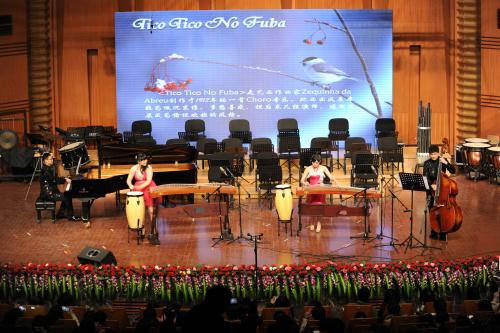 “筝谊”二十年音乐会共为观众呈献了十首乐曲,以江澹曦老师带领学生们上演声势浩大的筝合奏《倾杯情》开场点题,二十年岁月,二十年耕耘,已毕业踏入社会的学生们从全国各地赶回川音,这个梦想的起源地,与江老师一起用音乐倾杯诉情,重温昔日的光阴。接下来,我院研究生一年级学生周桃桃为大家带来由她自己原创并首演的筝独奏《镜华•水月》;江澹曦编配,本科古筝专业学生演奏的筝五重奏《木兰从军》;川音本科二年级古筝专业学生李媛与作曲专业研究生刘鹏共同创作,由江老师在读研究生演奏的筝六重奏《蔓影》;我系古筝专业讲师周天丽演绎的筝独奏《飞天》,由绵阳师范学院音乐学院青年教师王荿葓的新作;上半场最后一个节目,筝四重奏《浊浪》张志亮作曲,为天籁筝团委约作品,四位研究生凭借此曲曾获得第四届文华艺术奖小型器乐组合演奏奖(最高奖)。 下半场,首先上场的是江老师在教两位本科古筝尖子生张颖、李媛带来的筝重奏《Tico Tico No Fuba》;随后是研究生一年级古筝专业学生吴健创作的筝合奏《无词歌》,由江老师已经毕业的爱徒们共同演出;室内乐作品《汝色》,由我系古筝专业讲师陆晶领衔演奏,此作品出自川音作曲系青年教师景徐之手,曾由陆晶首演并多次获得作品大奖;压轴节目--筝与乐队《西楚霸王》,江澹曦携手beat365在线唯一官网西蜀中乐团,以炉火纯青的演奏将音乐会推至高潮,全曲结束时,台下雷鸣般的掌声久久未能停歇。