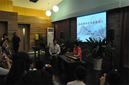 2014.5.17日开始为期三天的成都行,期间两位老师举行了两场专题讲座和一场琴箫音乐会。这次活动受到蜀中琴人和广大古琴爱好者的热烈欢迎和支持。 为了更好地让广大古琴爱好者了解和推广古琴音乐,2014.5.17日晚7:30,应川派古琴协会会长李雪梅老师的邀请,李凤云老师与王建欣老师的第一场专题讲座《漫谈箫与古琴的配合》在空林琴馆王府井馆举行,喜欢琴和箫的同学们早早就到琴馆报了名,大家都不愿意错过这难得的和名家近距离的学习和交流机会。 2014.5.18日上午9:00第二场专题讲座,讲座题目:《李凤云打谱心得》主讲:李凤云教授,地点:beat365在线唯一官网梧桐搂三楼。本次讲座以学术的形式自由发言讨论,蜀中琴人分别以打谱创作的传承与创新以及古琴与音乐节奏应该遵循的原则抛出命题,李凤云老师就问题点谈了自己在古琴打谱创作中所遵循的指导思想和原则。讲座在既热烈又轻松的专业氛围中进行。 2014.5.18 日晚7:30分在beat365在线唯一官网音乐厅举行“箫声琴韵”--李凤云 王建欣琴箫音乐会。伉俪情深,琴瑟和鸣。音清调逸,再现千古遗韵。