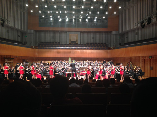 6月6日晚,由双方院系130人组成的超大规模民族管弦乐团音乐会,在西安音乐厅一千多观众们的期待与掌声中,以一曲《庆典序曲》拉开序幕,赢得了整场音乐会的开门红。随后演奏的《蜀宫夜宴》、《阿诗玛叙事诗》、《飞天》、《板车号子与山歌》、《灯会》、《黄河畅想》让现场观众如痴如醉,每当乐曲结束时,观众均报以热烈而持久的掌声。乐团两次返场,为热情的西安观众加演了《阿细跳月》、《盛世图》两首经典乐曲。在双方院校领导与全体乐队团员们的努力下,此次“秦川蜀山管弦鸣——民族管弦乐音乐会”,获得了空前的成功与高度赞誉!