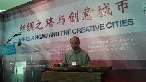 由联合国教科文组织(UNESCO)、中华人民共和国国务院新闻办公室、中国教科文组织全国委员会主办的“丝绸之路与创意城市” 联合国教科文组织总部展活动于2014年9月16日—19日在法国巴黎联合国教科文组织总部举行。成都市非物质文化遗产保护中心特邀我系古琴副教授、蜀派古琴代表性传承人曾成伟,参加此次展览活动的古琴表演。此次活动圆满结束,曾老师载誉而归。
