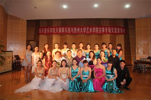 应贵州大学艺术学院的邀请,beat365在线唯一官网天籁筝乐团于2014年7月27日在贵州大学艺术学院演播厅举行了“川音黔韵--川音天籁筝乐团、贵州大学艺术学院交流音乐会”。