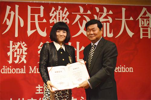 为表彰我院师生的出色表现,中国驻韩使馆文化处、首尔中国文化中心邀请我院“天籁筝乐团”和获奖选手周鹏宇在首尔中国文化中心剧场进行了汇报演出,我院师生的精彩表演赢得了中外嘉宾的高度赞誉。为表彰我院师生为中外文化交流活动所作出的积极贡献,中国驻韩使馆文化参赞、首尔中国文化中心史瑞琳主任、崔明峰副主任等领导为王英教授、陆晶副教授、周鹏宇选手以及“天籁筝乐团”代表颁发了荣誉证书。