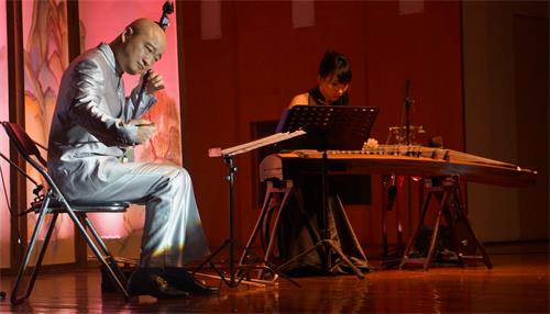 随着灯光暗下,音乐会正式开始,只见周钰老师手提一盏老式的烛灯,缓缓的走上舞台,在一个小桌前坐下,并将烛灯放在了桌前,“俞鹏是谁...”周钰老师耐心的给大家说着俞鹏的故事,仿佛将观众带回了那个久远的年代,重新认识了这位伟大的音乐家。 音乐家的故事当然少不了动人的音乐,随着《织女之歌》旋律的响起,音乐会演奏的部分正式开始了,周钰与周桃桃、二胡与古筝,两位演奏家默契的配合完美演绎了此曲高贵而娴静、有忧愁而无恨意、缠绵悱恻却又不放纵无度的音乐特点,表现出从容悠长和孤寂寒冷的韵味,仿佛声音从云间飘来,用琴声描写出了织女对凡人生活的憧憬。接着,周钰与周桃桃演奏了第二首乐曲——《咏怀曲》,淡雅秀丽、婉转流畅的旋律通过两位演奏家手中的乐器娓娓道出了俞鹏对人生世事的感叹,乐曲像一首笔调清晰、语言含蓄蕴藉的诗歌,给人一种亲切自然和耐人寻味的美感。两位演奏家继续以一首《琵琶韵》将音乐会带入高潮,周钰老师模拟琵琶的演奏爽朗明快、清新激越,充分展现了此乐曲的特点以及二胡的模仿能力。第四首《招隐吟》它的旋律舒展宽广、节奏简洁明快,配合筝的古琴呈现,表现出一种质朴苍劲,高古幽逸的情韵,第三段用泛音演奏的曲调、清新恬静的音色更增添了乐曲的深邃含蓄的情趣,同时也把作者在黑暗环境中对美好事物执着追求的情思,细微地表达出来。紧接着周钰与周桃桃又带来一首 《平原竞马》,周钰老师用二胡演奏出升腾越跌、急速流畅的旋律,生动地描绘了骏马奔驰、激烈追逐的狂放景象。让台下的观众大呼过瘾、连连称绝。曲风突变,音乐会开始了第六首的演奏——《抚琴怀友曲》,观众随演奏者一起屏住呼吸聆听周钰老师只用二胡的一根弦且左手只用一根手指按弦的方式模拟出古琴演奏的情韵,手指在弦上流畅圆滑的抚按,展现出一种悠然如诗的意境,如吟咏之韵味、如君子之交谈。扬琴独特的音色加上木鱼及罄发出的声音,禅意四起,周钰、王英、张忠三位老师似是引人参禅悟道的智者,音乐的智者。之后,三人又继续给大家演奏了音乐会的第七首乐曲——《林间舞曲》,把大家从禅意中带到大自然的中间,去快乐的舞蹈,感受自然之道、音乐之道。美好的时光总是过得这么快,转眼音乐会就进行到第八首乐曲——《牧野双笛》,这是一首二胡二重奏的乐曲,周钰老师请出了自己的妻子陶萍女士跟自己搭档,这让全场沸腾了起来,两人默契的配合、相互交融的琴声征服了在场的所有人,赢得了全场的掌声。随后周钰老师独自演奏了《D短调即兴曲》,展现了其精湛的技艺,俞鹏先生在上世纪40年代就已有的如此开放的音乐态度折服了在场的观众。最后,周钰、王英、张忠、郭小琴四位演奏家合力给大家演奏了——《南胡之狂想曲》,让观众意想不到的是俞鹏先生在那个年代就已经写出了如此现代而高难度的乐曲,周钰老师详细的给大家讲解了演奏这首乐曲的难点之后,再次用琴技征服了在场的所有人,用自己的琴声让来自九天之外的遗留之韵深深印在了观众心里,也让我们感受到了蜀派二胡的魅力。
