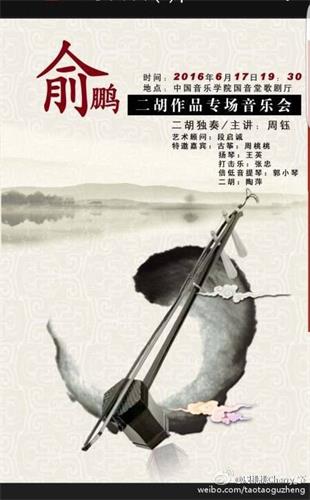 周钰教授受邀北京“中国弓弦艺术节”举办《俞鹏二胡作品专场音乐会》