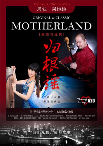 2016年5月20日晚19:30分,重庆国泰剧院座无虚席,由我系周教授、艺术硕士研究生周桃桃联袂举行的【归根谣】---二胡、古筝专场音乐会在此拉开帷幕。
