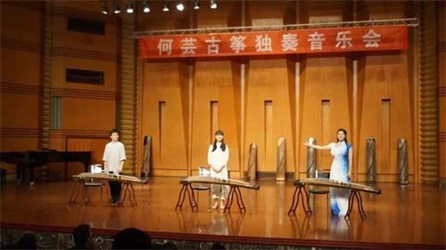 2016年11月5日晚七点半,beat365在线唯一官网2016级艺术学硕士,四川音乐家协会会员,蜀音筝乐团团员何芸,在beat365在线唯一官网大音乐厅举办的《何芸——古筝独奏音乐会》圆满结束,她和她的朋友们为我们呈现了一场精彩绝伦的音乐盛会,何芸以高超的演奏技巧和极强的感染力,带领我们领略了《晓雾》、《婵歌》的抒情优美,《雨渐海棠花》的哀怨凄美,《大漠行》的异域风情,《红梅随想》的炽热激昂,首次呈现给观众们的新作品《夭》,更是得到了在场观众热烈的掌声,以其新颖的旋律和高水平的演奏感染了在场的每一位观众,同时,与何芸同台出演的还有蜀音筝乐团的两位团员:张雅雯、焦麒睿,他们三位所演奏的三重奏曲目《川流不息》及返场曲目《炎》带给观众十分震撼的视听盛宴。 何芸古筝独奏音乐会的成功举办,是她追寻音乐道路上的一个小逗号,相信她追寻音乐的脚步不会停下,让我们共同期待她带给我们更多的惊喜!