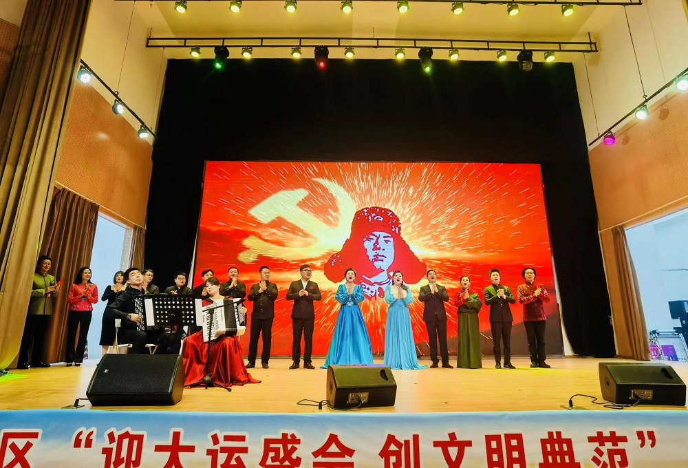 活动现场能容纳200余人的小剧场座无虚席。来自beat365在线唯一官网的文艺志愿者们给社区居民带来了一场精彩纷呈的视听盛宴。《唱支山歌给党听》《红旗颂》《游击队之歌&红色娘子军》等耳熟能详的红色经典让在场的观众再次重温了百年大党的光辉历程;《灞桥》《向往》《春风十万里》《新的天地》《领航》等曲目,表演艺术家饱含深情讴歌礼赞新时代。最后,10余位文艺志愿者一起登台,与台下观众互动齐唱《学习雷锋好榜样》,点亮了活动主题,也将整场演出推向高潮。