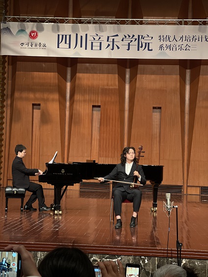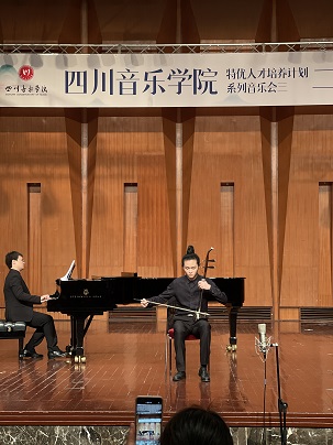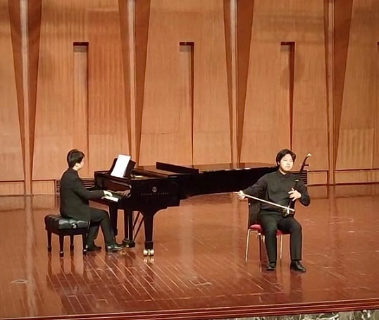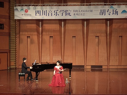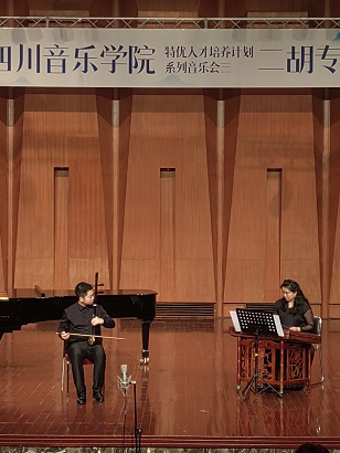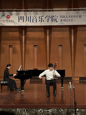 本次音乐会由7位来自不同学业阶段的二胡专业优秀学生(包括附中、本科、研究生),分别选择了共7首不同类型以及题材的二胡独奏作品进行演绎,这7首作品分别为《听松》、《阳光照耀着塔什库尔干》、《火——彩衣姑娘》、《第四二胡狂想曲》、《蓝色星球——地球》、《阿曼尼莎》、《雪山魂塑》。音乐会现场观众除本校师生外,还吸引了不少二胡爱好者以及校外人士前来聆听、观摩。7位同学全情投入的表演展现出了各自良好的专业技术水平与独特风采,也因此赢得了在场观众的肯定与掌声。音乐会表演结束后,出席音乐会的民乐系党委书记、主任张忠教授、副主任江澹曦教授以及多名弦乐教研室教师对学生们的优异表现及进步表示祝贺,并勉励本次参演学生再接再厉,通过勤奋学习与反复磨练,争取能够持续提升并突破自我,勇攀艺术高峰。