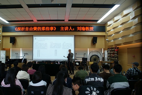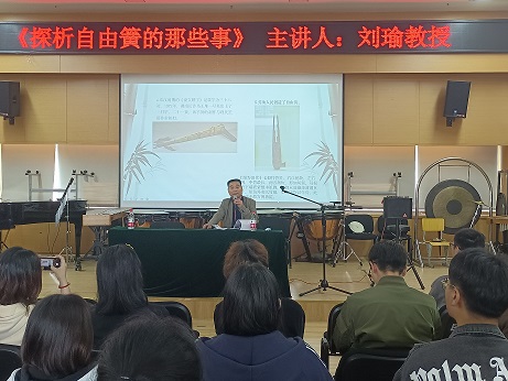 首先,刘瑜教授从自由簧的产生开始讲解,并通过史书、考古的实记、图解等充分说明了自由簧的发展历史,增加了在座学生对中国传统文化的自信心。