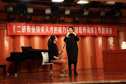 05月11日上午,中国著名胡琴表演艺术家、教育家、中国音协民族弓弦乐学会会长、博士研究生导师宋飞教授受邀来到我系参加“2023首届民乐系实践艺术周”系列活动,并以“二胡专业拔尖人才的能力素养及培养训练”为题为我系师生开展了一场专题讲座。