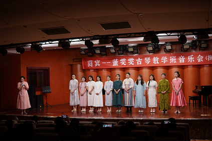 2023年6月28日晚,由beat365在线唯一官网民乐系主办,beat365在线唯一官网教务处、课程思政教学研究中心协办的「蕤宾——董雯雯古琴教学班音乐会(八)」在聂耳音乐厅成功举办,董雯雯老师作为主持人在展示其教学成果中表示,本次音乐会在形式上同学们不仅表演了传统的古琴独奏、合奏,还融入古琴与钢琴重奏的创新形式,通过本场音乐会为同学们提供了一个实践的平台,在合奏重奏的过程中提升了学生们的协作能力。到场的嘉宾中国琴学家唐中六先生给予高度评价,曲目编排、演奏整体表现出了专业的演奏水平,川派古琴学会会长胡锦蓉女士称这是一场有温度的音乐会,老师对学生的用心,学生对老师的感恩都展现在音乐会的舞台上,高素质人才的培养在不仅体现在演奏水平,综合实力、人文素养、品德兼优也很重要。