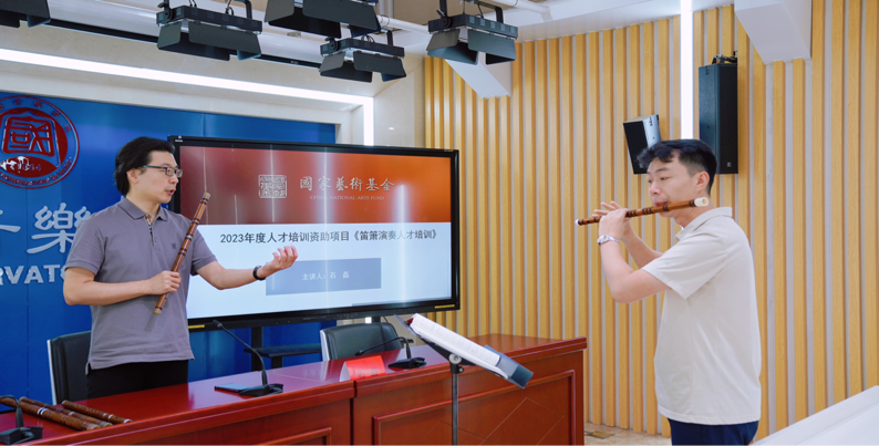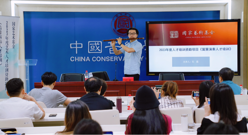 近日,我院民乐系石磊副教授应“国家艺术基金2023年度《笛箫演奏人才培训》项目”课题负责人陈悦教授(中国音乐学院博士生导师)邀请,担任项目导师。于8月6-7日在中国音乐学院国音堂新闻中心为来自全国各地的25位学员授课。