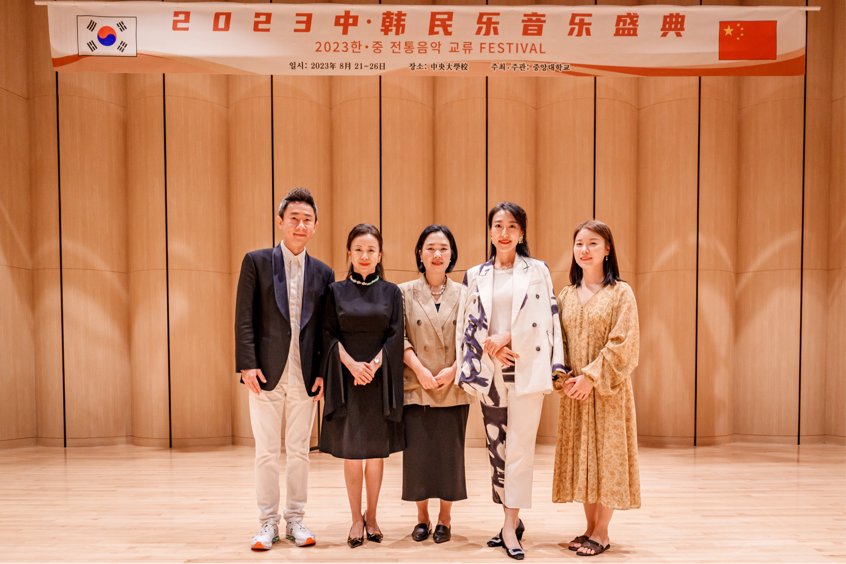 我院民乐系教授、天籁筝乐团团长陆晶受邀率天籁筝乐团赴韩国参加“2023中·韩民乐音乐盛典”。此次活动由北京德音爱艺文化传媒有限公司主办,韩国中央大学承办,中国驻韩国大使馆、韩国教育部、中韩法律协会给予大力支持,KBS韩国国家广播电视台作全程报道。本次盛典不仅精彩纷呈,还展现了中韩两国民乐的魅力,受到了观众的一致好评。中韩全球协会会长禹守根、中韩法律协会会长丁莹镇、北京德音爱艺文化传媒有限公司毛星宇先生等出席并致辞。