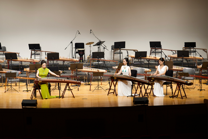 音乐会最后,陆晶教授率天籁筝乐团同演奏家们一起演绎了《茉莉芬芳》、《阿里郎狂想曲》,两国筝团的合奏让现场观众深刻感受到了中韩两国友好合作的氛围。