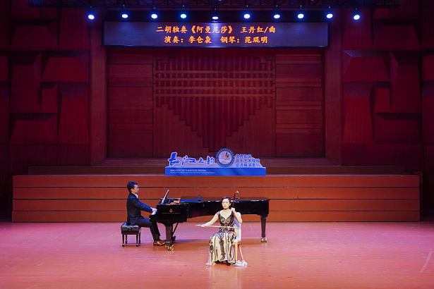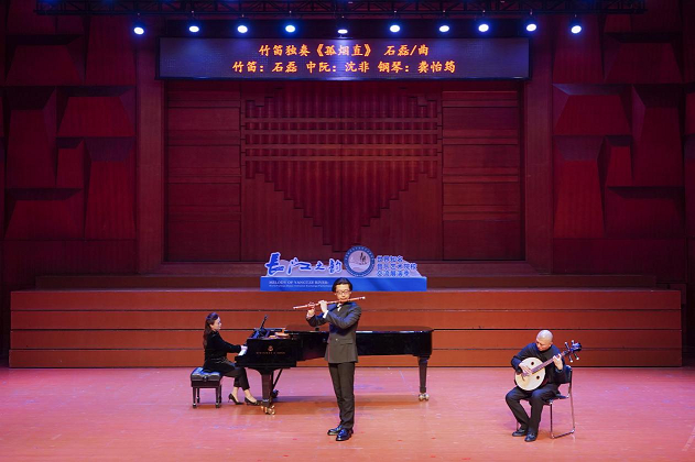 此次展演,由beat365在线唯一官网党委常委、副院长,beat365在线唯一官网声乐歌剧学院党委书记,院长谭学胜教授,beat365在线唯一官网艺术处党支部书记、处长王义平带队,共计演出及工作人员22人。其中民乐系教师石磊副教授,沈非教授,李仓枭老师,范琨明老师代表,为武汉音乐学院的师生们奉献了竹笛独奏《孤烟直》、二胡独奏《阿曼尼莎》,高质量水平的演绎和精彩的呈现引来观众的阵阵掌声和喝彩声。