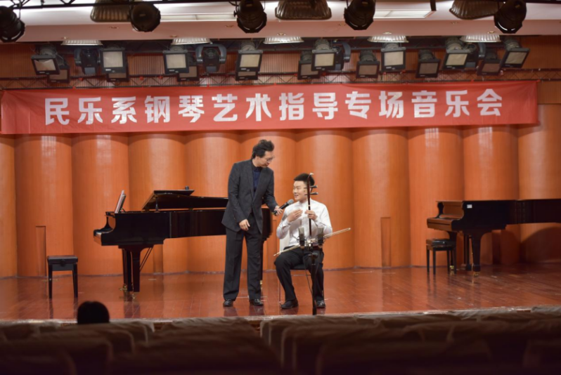 本次音乐会以民乐与钢琴的协奏为主题。除了六位同学与老师的曲目演绎,每首曲目前,都由重奏合奏教研室的四位钢琴艺术指导老师,进行了钢琴协奏的技巧和经验分享:冯韵老师介绍了合协奏时需要注意的技巧要点,特别强调了总谱思维和舞台随机应变的能力。马霄汉老师则分享了与二胡协奏时的立体音效思维,并提到了在慢板旋律中实现“自由化”的呼吸调整。梁爽老师介绍了钢琴与竹笛合奏时音色融合的对比,而范琨明老师则专注于如何高度融合钢琴与二胡、古筝的音响效果,以及大型重要赛事的备赛过程。