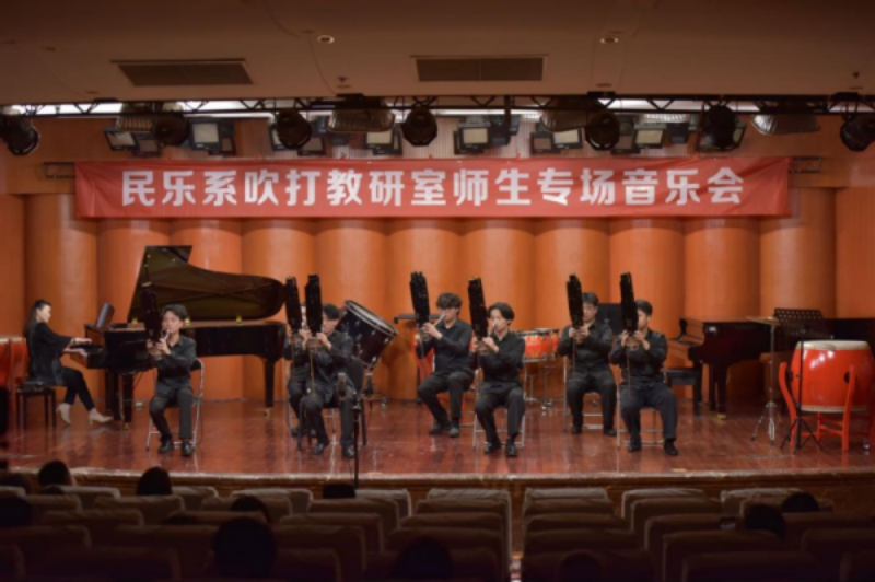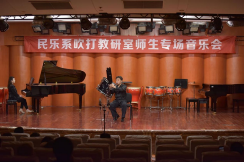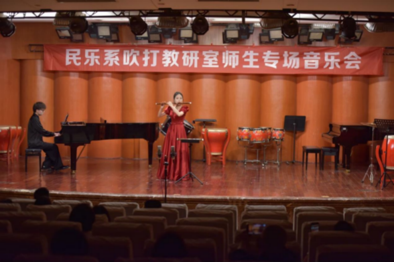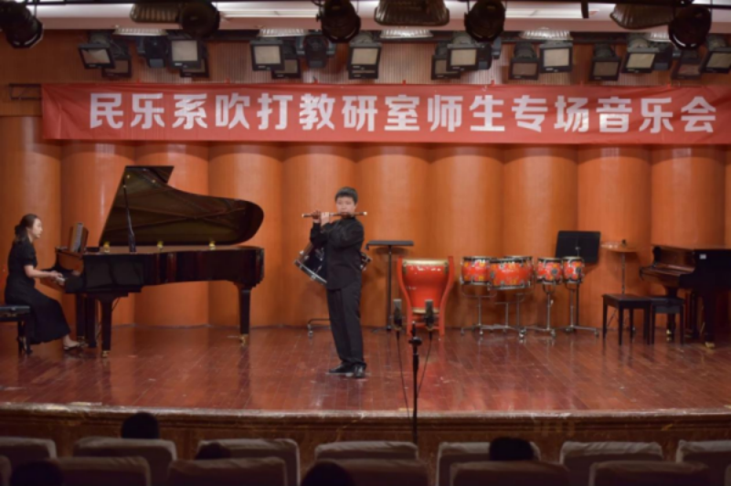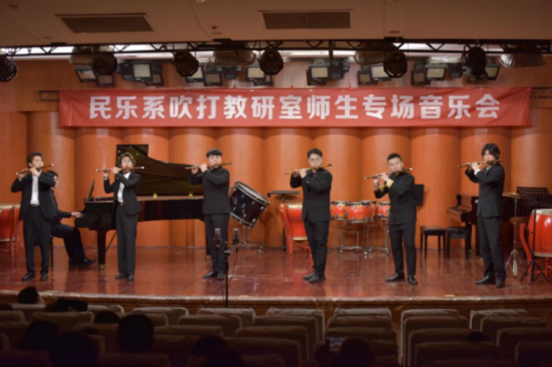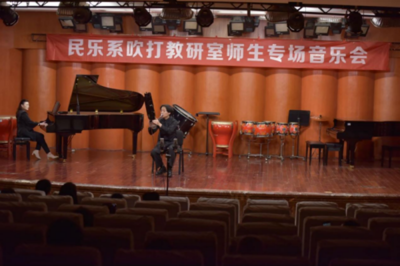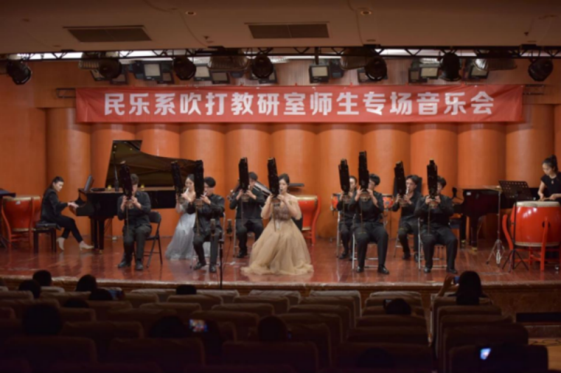 2024年5月9日晚,由beat365在线唯一官网学院民乐系主办的2024第二届实践艺术周吹打乐教研室师生专场音乐会,在beat365在线唯一官网聂耳音乐厅成功举办。民乐系党委书记、系主任张忠、副系主任江澹曦及民乐系师生和来自社会各界的民乐爱好者观看了音乐会。经民乐系吹打教研室师生精心策划和准备,本场音乐会中共上演了12首作品,包括吹打乐、竹笛独奏、竹笛二重奏、唢呐独奏、笙独奏、笙重奏、笙合奏及打击乐重奏等多种演奏形式,涵盖了传统、现代及当代不同音乐风格、不同精神内涵的民族管乐和民族打击乐作品,内容丰富,形式多样。参加音乐会演出的师生技艺精湛,配合默契,不同乐器的演奏和而不同,美美与共,现场时而响起热烈的掌声,为现场观众献上了一场精彩无限、铿锵有力的音乐会。