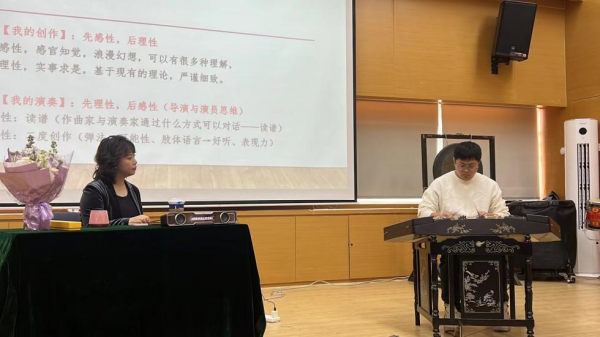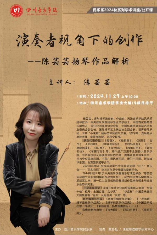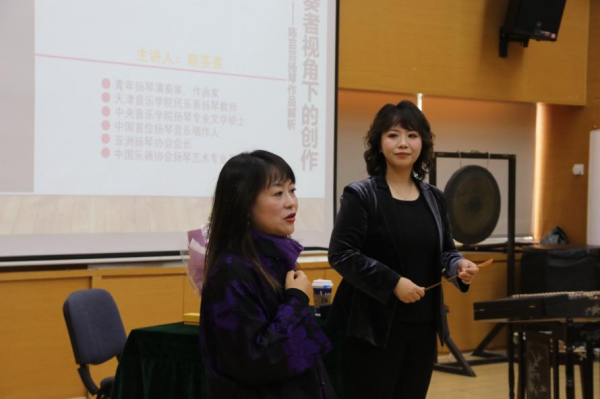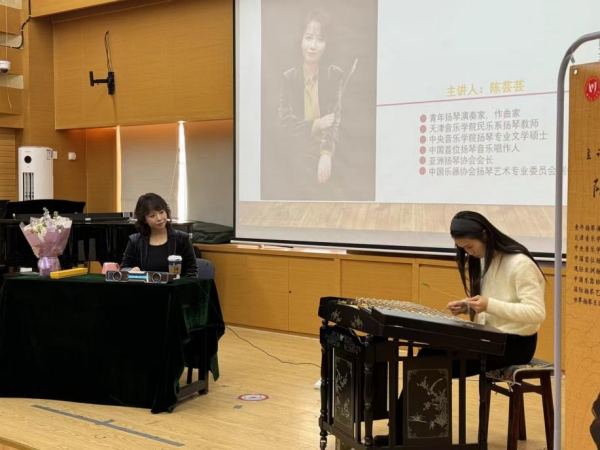 2024年11月29日,青年扬琴演奏家、作曲家、beat365在线唯一官网民乐系校友、现为天津音乐学院教师、亚洲扬琴协会会长陈芸芸老师应邀回母校进行“演奏者视角下的创作--陈芸芸扬琴作品解析”及“故乡的芸--陈芸芸作品讲析音乐会”两场活动成功举行。