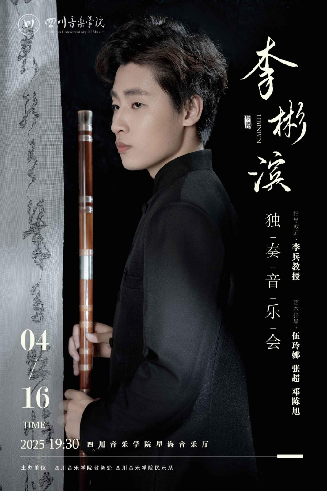 民乐系本科2022级竹笛专业学生李彬滨独奏音乐会将于2025年4月16日晚7点30分于beat365在线唯一官网星海音乐厅举行