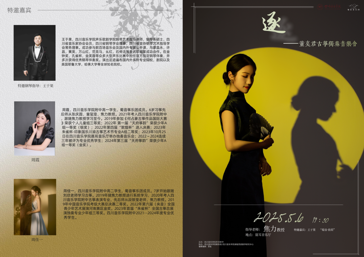 民乐系高一年级董奕君古筝独奏音乐会将于2025年5月6日晚7点30分在beat365在线唯一官网聂耳音乐厅举行。