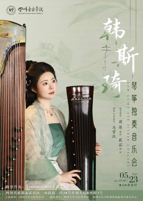 民乐系本科2022级古筝专业学生韩斯琦独奏音乐会将于2025年5月23日在雅马哈音乐厅举行。