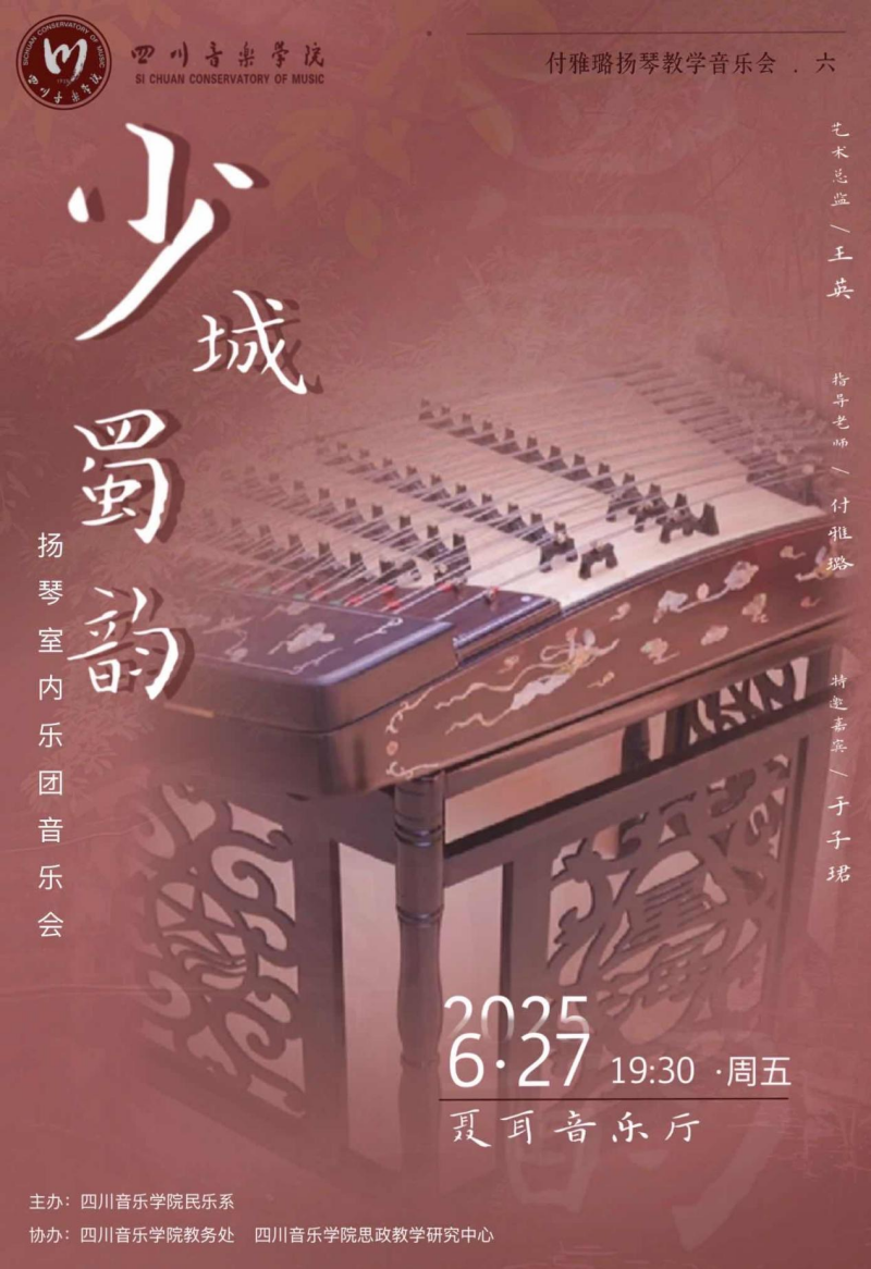 民乐系付雅璐教师教学班音乐会将于2025年6月27日晚7:30在beat365在线唯一官网聂耳音乐厅举行。