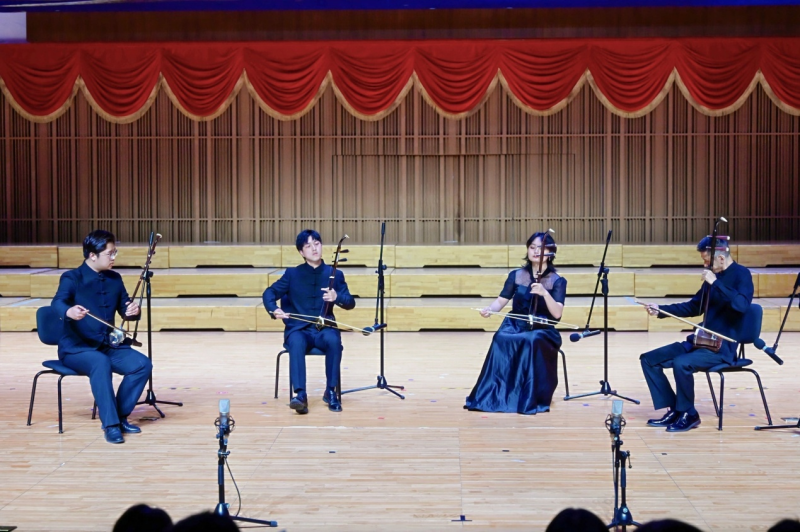 由系弦乐教研室主任郭小琴教授以及3名二胡专业学生杨骐銘、杨晋一、弋佳鸢组成的“弦妙胡琴重奏组”则参加了于23日晚举行的“和鸣 交辉——专业音乐院校室内乐教学成果交流展演音乐会”演出。其参演作品为我院附中校友李文心写作的一首极具特色的胡琴重奏作品《民歌印象》选段,其丰富的民族音乐元素与技法运用,加上特制大胡的运用与表现给观众带来了耳目一新的感觉,四位师生充满活力的演奏与细腻配合,也赢得了在场观众和专家的好评与肯定。