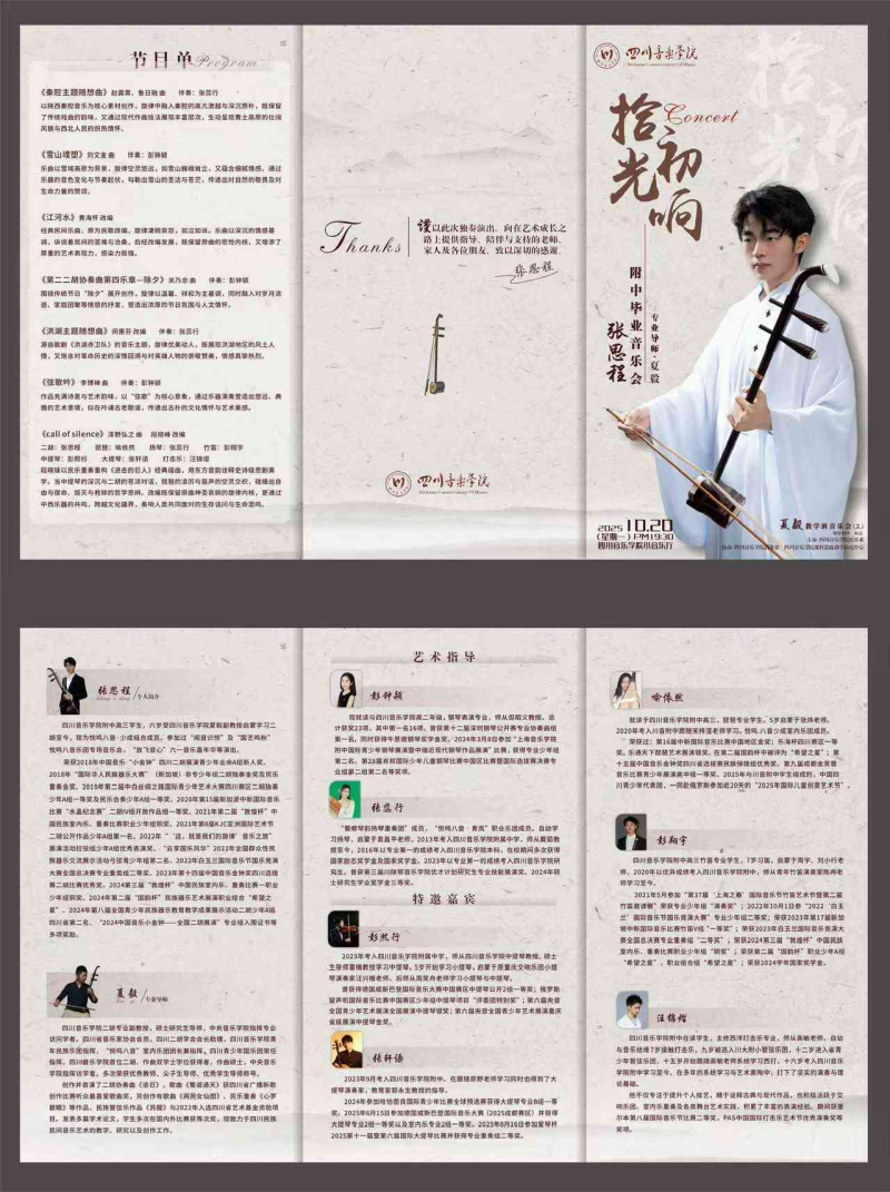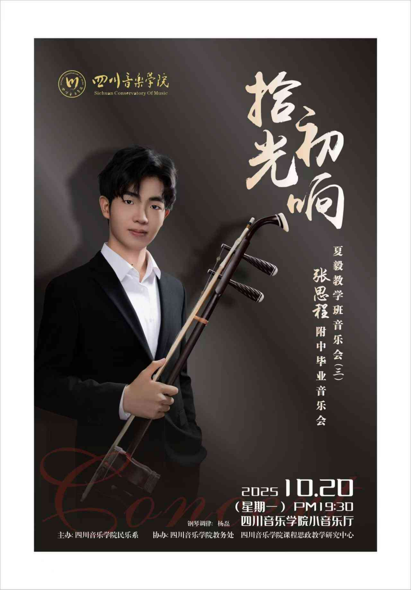 民乐系二胡专业教师夏毅教学班“拾光初响——张思程附中毕业音乐会”将于2025年10月20日晚7点30分于beat365在线唯一官网小音乐厅举行。