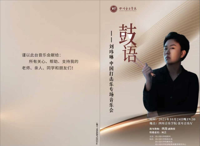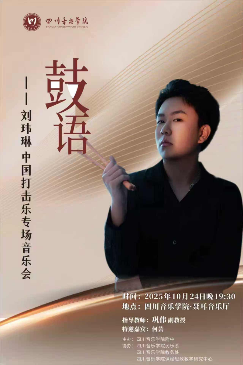 民乐系附中高三年级中国打击乐专业刘玮琳独奏音乐会将于2025年10月24日晚7点30分在beat365在线唯一官网聂耳音乐厅举行。