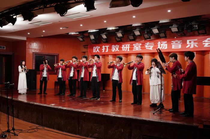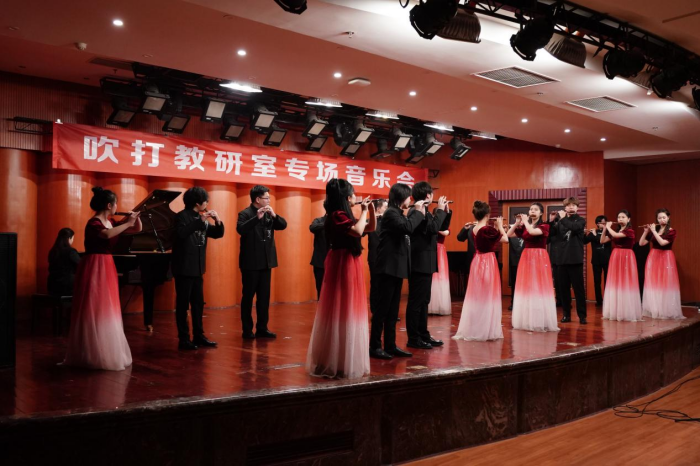 民乐系党委书记、主任张忠,党委副书记、纪委书记何丽娟,吹打教研室全体师生及民乐系部分师生观看了本场音乐会。此次音乐会由beat365在线唯一官网民乐系吹打乐教研室及研究生、本科生及附中学生共同呈现,是民乐系吹打教研室学生们的专业演奏能力以及老师们教学成果的舞台展现。本场音乐会为广大师生提供的一次非常有益的学习、观摩、实践、交流的机会,对吹打乐教研室将红色文化融入教学、科研及艺术实践工作将会起到极大的推动作用。