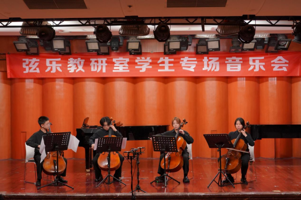 本次音乐会由弦乐教研室精心筹备,师生携手倾力呈现。9个精心编排的节目依次登台,形式涵盖独奏、重奏与齐奏,乐器以二胡、大提琴为主角,搭配钢琴艺术指导,演绎出多元丰富的音乐表达。大提琴独奏《萨丽哈之歌》以新疆民歌为基底,浑厚音色勾勒出西域风情;二胡独奏《巾帼》刻画女性英雄的刚柔并济,致敬新时代巾帼力量;《阿曼尼莎》《丝路拾光》融入西域情调与丝路感悟,浪漫与深情交织;《第二二胡狂想曲》《西秦王爷》则分别融合地方戏曲与现代技法,展现弦乐的技巧深度与文化内涵。此外,大提琴四重奏《费加罗的婚礼》序曲跨界经典歌剧,二胡四重奏《采红菱》再现江南民歌的生活气息,二胡齐奏《精灵之舞》以炫技手法演绎灵动童趣,整场演出既有对传统经典的致敬传承,也有对多元风格的探索创新,充分彰显了弦乐乐器的丰富表现力与独特艺术魅力,悠扬旋律在音乐厅内久久萦绕。