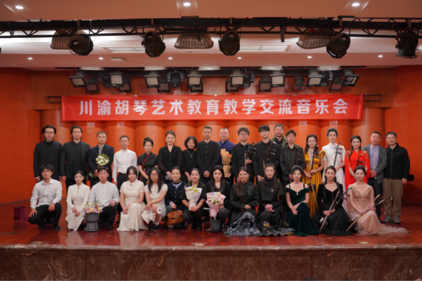 音乐会在全体演职人员合影中落下帷幕。此次活动不仅为师生搭建了展示交流的舞台,更凝聚了川渝艺术教育协同发展的共识,为传统音乐文化传承创新注入新活力。