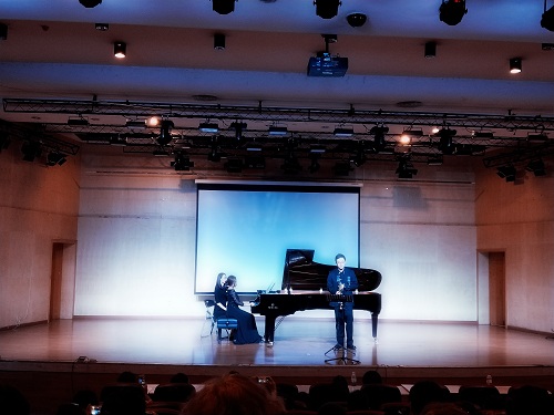 2018年5月13日19:30,我系萨克斯管教师易炼携手音教系罗翔老师和钢琴系老师陈雯来到四川大学,三位接地气、有个性、有趣味的给现场观众带来了一场讲座和音乐会,让台下听众感觉不虚此行。 音乐会中,易炼老师一共演奏了7首乐曲,分别是皮亚佐拉的《遗忘》,德里维拉的《两首小品》,川音青年作曲家刘力的《江岸灯影》,布扎的《咏叹调》,惠特尼的《伦巴舞曲》和戴夫•考兹的《我所看到的都是你》,整场音乐会风格对比鲜明,一“耳”了然,观众大呼过瘾。最后音乐会在罗尔夫•劳弗兰的《You Raise Me Up》中落下帷幕,现场观众也在优美的旋律中沉醉不已。