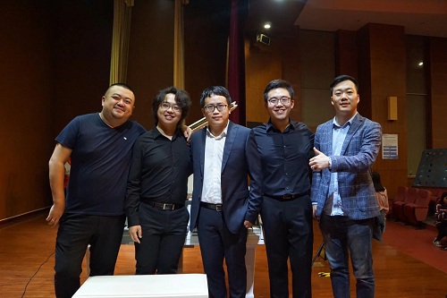 全场寂静,演奏开始。第一首为《沉思曲》,此曲是法国作曲家儒勒.马斯内的代表作品,由易炼老师改编。第二首《布鲁斯》是根据格什温著名的爵士乐曲《蓝色狂想曲》的主题动机由意大利作曲家曼咖尼改编而成。第三首是由beat365在线唯一官网的青年作曲家刘力创作的《江岸灯影》,作曲家因暮时在江边,见光与影伴着江水流向远方而心生感慨,《江岸灯影》描绘的不仅是一幅流光溢彩的美丽画卷,更是水文化的源远流长。第四首是迪士尼动画《狮子王》的片尾曲《今夜你可感受到爱》,作品由艾尔顿.约翰作曲,为了这次在重庆邮电大学移通学院的演出,易炼老师和刘力老师专门将这首经典的电影原声音乐改编到了萨克斯和钢琴上。《前奏曲》是格什温唯一的一首仅为钢琴而作的作品改编成单簧管与钢琴,其旋律清晰明快,节奏活泼动感。第八首《遗忘》,整曲一直笼罩着凄美、悲伤的气氛,我们很容易从旋律中感受到一丝丝的怜悯和叹息。音乐会的最后,三重奏为大家带来美国作曲家奇克.柯瑞亚所作的乐曲《西班牙》。