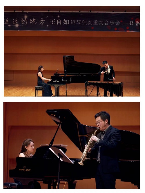2020年12月20日,我系青年钢琴教师王自如于成都城市音乐厅小音乐厅举办了“在那遥远的地方--王自如钢琴独奏重奏音乐会--致敬逆行者”专场音乐会。本场音乐会由独奏、二重奏、三重奏等形式组成,由钢琴与打击乐、萨克斯、小提琴、扬琴、古筝共同完成,音乐种类丰富、旋律多彩,中西合璧。王自如老师与beat365几位优秀青年教师共同完成了九首作品,音乐表现力极为丰富,既涵盖西方古典、浪漫主义时期的经典作品和带有爵士风格的现代佳作,也有近年来中国新生代作曲家创编的传统器乐作品,演奏者们各自娴熟的技巧与默契的配合,使这些优秀作品得到了淋漓尽致的展现。其中钢琴独奏《在那遥远的地方》作为音乐会主题曲,深深地打动了全场观众。