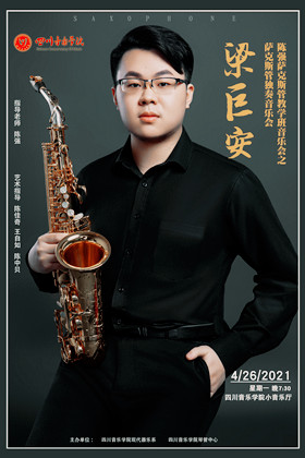 2021年4月26日晚19:30分,我系古典萨克斯管教师陈强教学班学生梁巨安在小音乐厅举办了独奏音乐会。