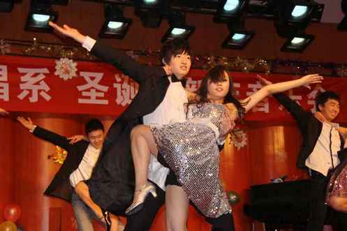 辞旧迎新展风采 拥抱明天谱华章 歌剧与合唱系成功举办:圣诞暨新年晚会 2011新年即将到来之即,歌剧与合唱系全体师生欢聚一堂,在聂耳音乐厅成功地举办了:“圣诞暨新年晚会”,系委会、团总支、学生会和老师们与同学们精心地编排了一台圣诞迎新晚会,这也是继11月30号我系成功地举办了“情景歌剧与合唱音乐会”,充分展示了我系首批师生的实力后,又一次展示我系学生们的艺术风采。 晚会所有节目包括民族舞蹈、流行舞、小品、男生小合唱、音乐剧等精彩纷呈的节目都是在老师们的帮助下,学生们自编、自导、自演,台上演员的表演投入认真,台下座无虚席的观众挥舞荧光,欢声笑语不断。 系委会为学生们提供艺术实践机会的同时,又共同营造了祥和温馨的氛围,让同学们在辞旧迎新的日子里充分享受到了歌剧与合唱系这个大家庭的温暖。全系188名学生和老师们作为观众为学生们的精彩表演共同喝彩!而且度过了一个美好开心的夜晚。