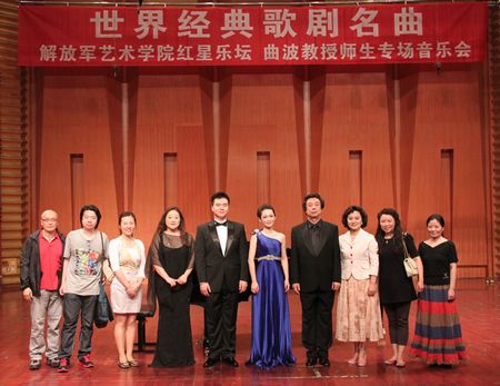 为推动经典歌剧交流,由歌剧与合唱系与解放军艺术学院音乐系联合主办的“世界经典歌剧名曲——红星乐坛”曲波教授师生专场音乐会于5月28日晚7点30在学院大音乐厅成功举行。本次音乐会特邀解放军艺术学院音乐系曲波教授携爱徒前来交流演出,为全院师生奉献了一台精湛的世界经典歌剧选段。    音乐会上,曲波教授携弟子女高音刘畅、男高音高旗为听众送上了法国、意大利著名的歌剧咏叹调及重唱。如:我要生活在梦幻里——歌剧《罗密欧与朱丽叶》、姑娘的秋波——选自歌剧《唐帕斯夸勒》、你玷污了我的灵魂——选自歌剧《假面舞会》、祖国的敌人——选自歌剧《安德烈.谢尼艾》、从未见过如此美丽的姑娘——选自歌剧《曼侬.莱斯科》以及《茶花女》第二幕、第三幕等,令在场所有观众品尝了一场高质量的艺术盛宴。并且,在音乐会结束时,应全场听众的一再要求,曲波教授又返场先后演唱了【西班牙女郎】及【负心人】,得到了在场观众们的高度评价,现场掌声不断。    本场音乐会是继我系情景歌剧音乐会之后推进的又一次歌剧交流之举。开展此类音乐会大大强化了音乐专业类学生对西方歌剧的了解。我系奉行全国乃至国际和校际之间的交流与沟通,更加切合实际的对本专业进行研究。从而,让学子们真正能够在艺术的殿堂里寻探到千姿百态的瑰宝。我系将会在接下来的教学与交流工作中,筹办更多高质量的音乐盛会,力求培养出更多的高质量的音乐人才!