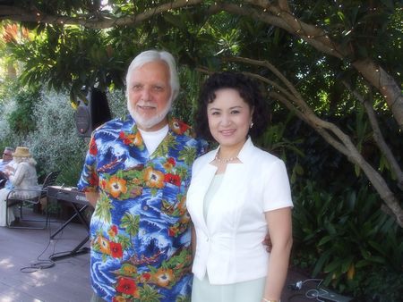 今年在著名影星芭芭娜. 鲁娜别墅举办的ANMT夏季捐款活动首次邀请了中国著名歌唱家我系系主任张莉教授。组委会因考虑张莉教授刚从中国抵达美国,一路辛劳和时差反应而没有事前安排张莉教授为活动专门演出,但在好莱钨未来之星们的精彩演出后,应所有来宾强烈要求,张莉教授即兴自弹自唱了普契尼的歌剧《佳尼.斯基基》中著名的咏叹调:“我亲爱的爸爸”,使在场的好莱坞影星们兴奋激动不已,张莉教授演唱后,纷纷上台祝贺并与张莉教授合影留恋。