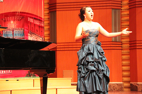 莅临音乐会的领导有院长易柯教授、院党委副书记文云英、副院长孙洪斌等,还有虽然未能亲自到场,却一直关心我系声乐教育的我国著名声乐教育家金铁霖教授,为了庆贺此次音乐会的顺利召开,金教授专门为我系挥笔泼墨题词:“美好歌声,走向世界”;中国著名男高音歌唱家、教育家、解放军艺术学院音乐系主任李双江教授也特地赠与了他的个人专辑,以肯定我系两年来的办学成绩,并鼓励大家再接再厉再创佳绩。这场音乐会主要采取钢琴伴奏形式,每一位老师依次登台展示个人高超的演唱功力,赢得台下一片欢呼声。